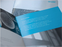 The name 'QinetiQ' captures the dynamism of 9,000 scientists working to make the impossible happen, while the brilliant blue colour represents the 'blue sky' thinking at the heart of its research.